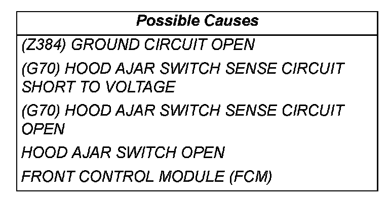 5. (G70) HOOD AJAR SWITCH SENSE CIRCUIT SHORT TO VOLTAGE