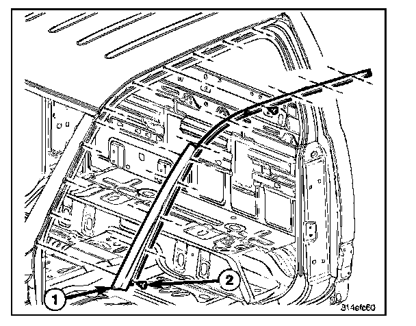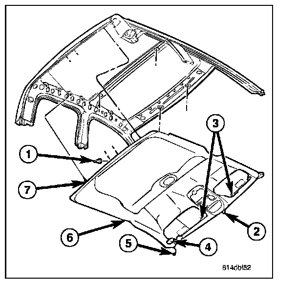 6. Remove the headliner (6). (Refer to - INTERIOR/HEADLINER/REMOVAL)