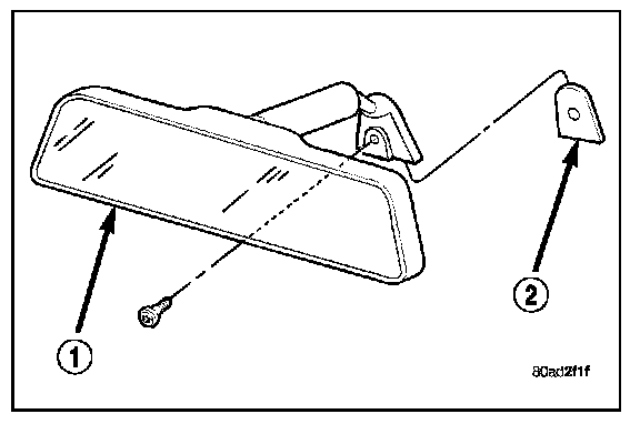9. Install the rearview mirror (1). (Refer to - INTERIOR/MIRROR - INSIDE REARVIEW/INSTALLATION[REARVIEW MIRROR])