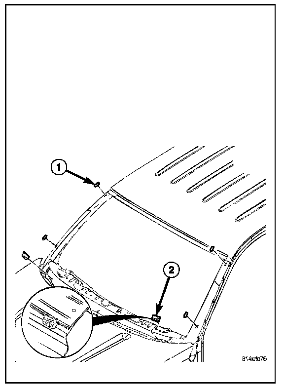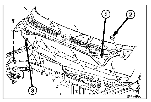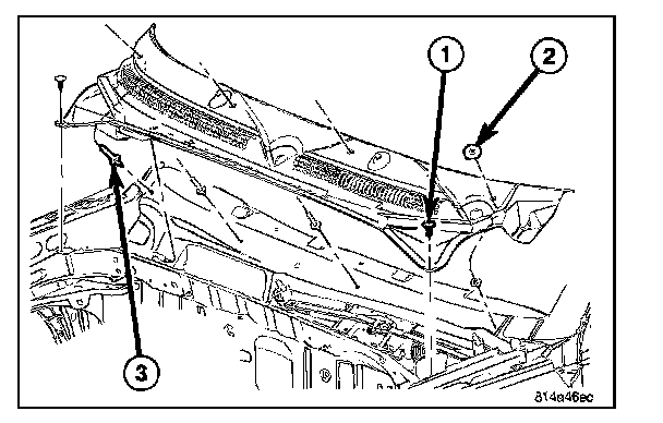 4. Remove the cowl grille. (Refer to - EXTERIOR/PANEL - COWL TOP/REMOVAL)