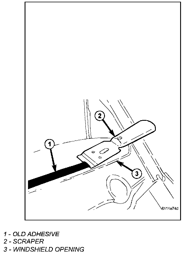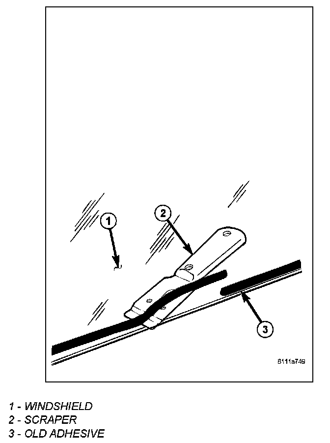 2. Level old bead of windshield adhesive (3) to a thickness of approximately 1 mm (0.04 in.) and remove loose adhesive.