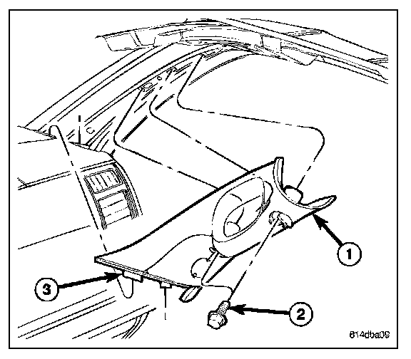 5. Remove the a-pillar trim panels (3). (Refer to - INTERIOR/PANEL - A PILLAR TRIM/REMOVAL)