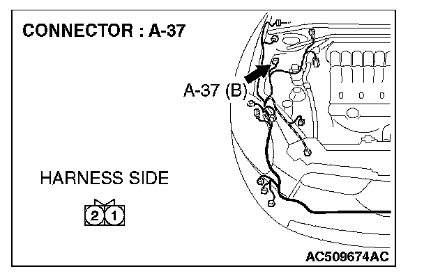 STEP 4. Check the wiring harness between hood switch connector A-37 (terminal 2) and ground.
