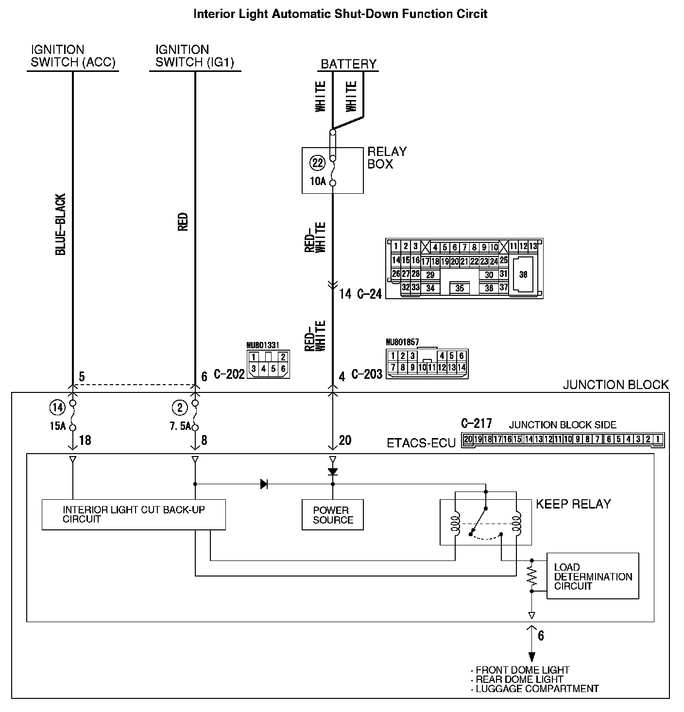 INSPECTION PROCEDURE N-8: ETACS-ECU does not receive any interior light loaded signal.Interior Light Automatic Shut-Down Function Circuit (Part 1):