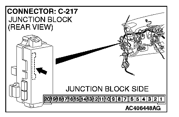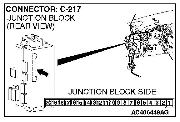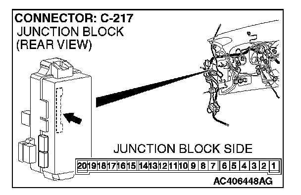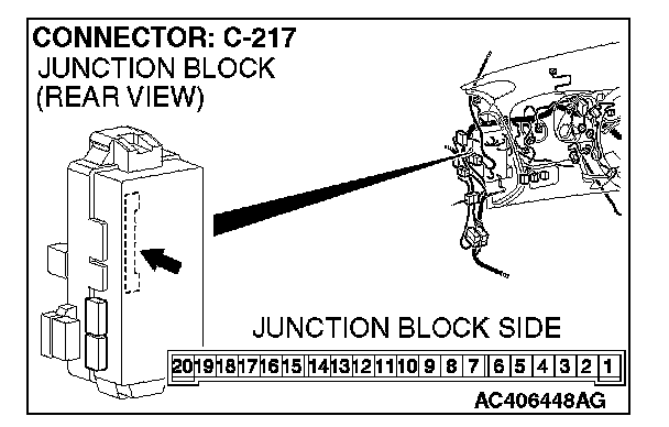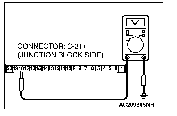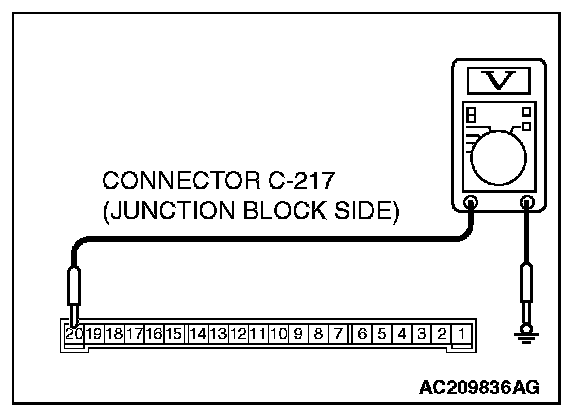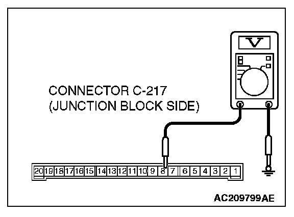 1. Disconnect ETACS-ECU connector C-217 and measure the voltage available at the junction block side of the connector.