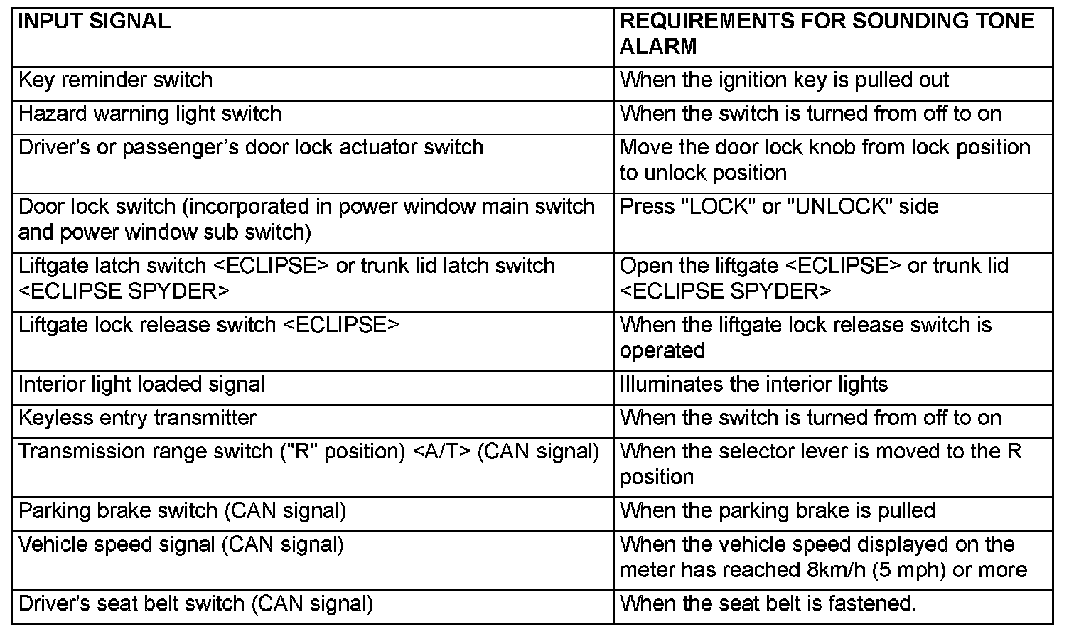 2. Use the scan tool MB991958 (M.U.T.-III Sub Assembly) or voltmeter to check the following input signals.