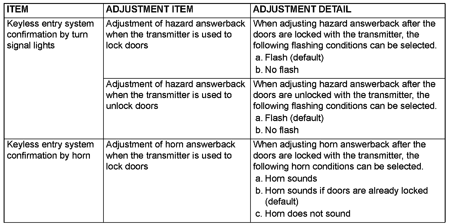 - The answerback operation can be adjusted as follows: