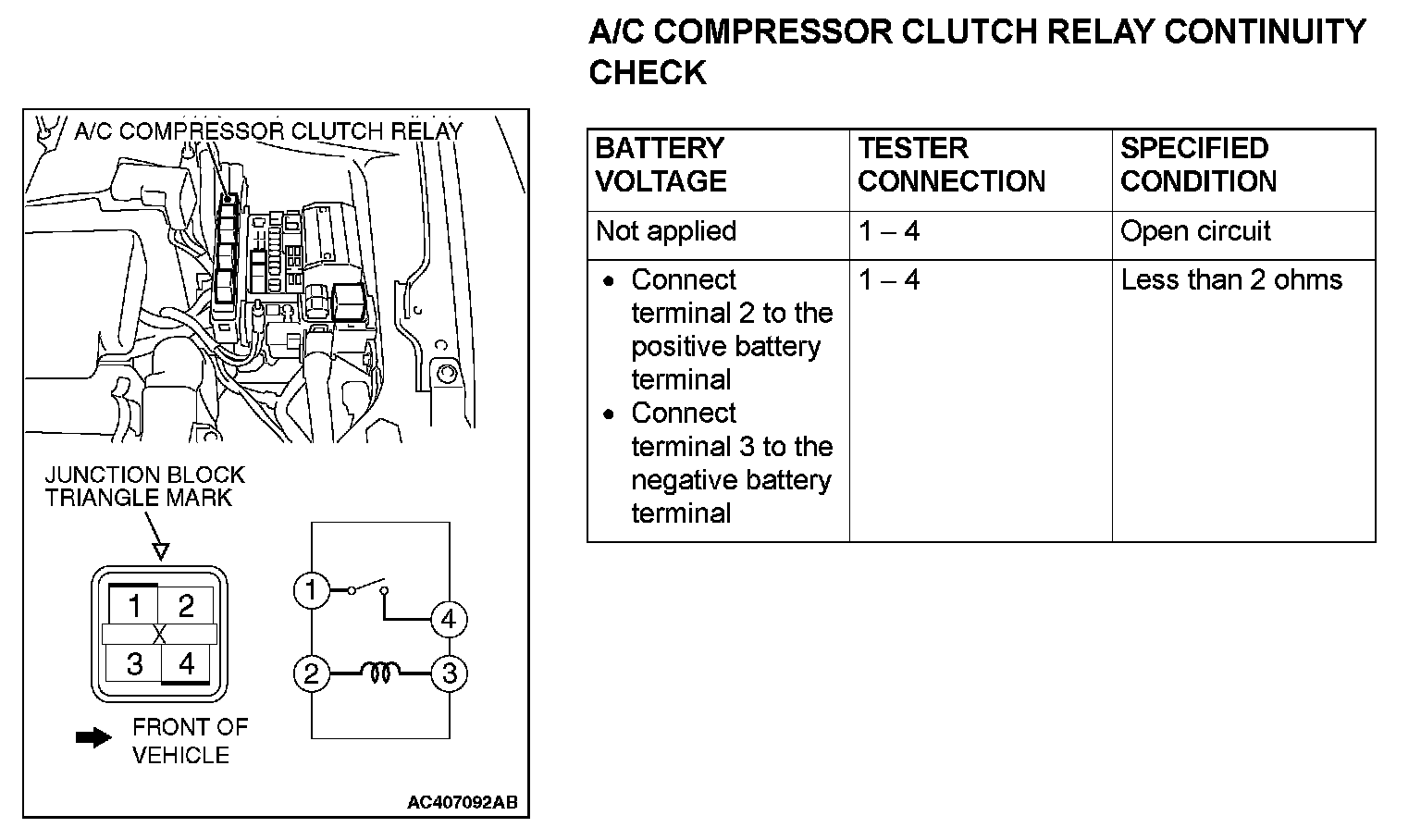 A/C Compressor Clutch Relay Continuity Check:
