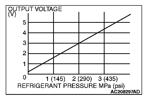 4. At this time, check to see that the voltage of A/C pressure sensor terminal No. 2 reflects the specifications of the figure.