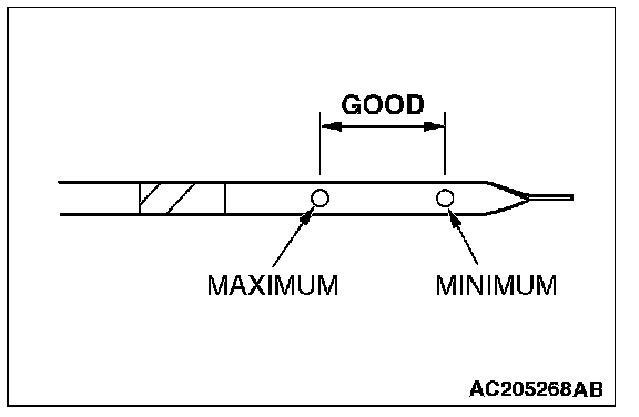 ENGINE OIL CHECK1. Pull out the oil dipstick slowly and check that the oil level is within the marks on the oil dipstick.