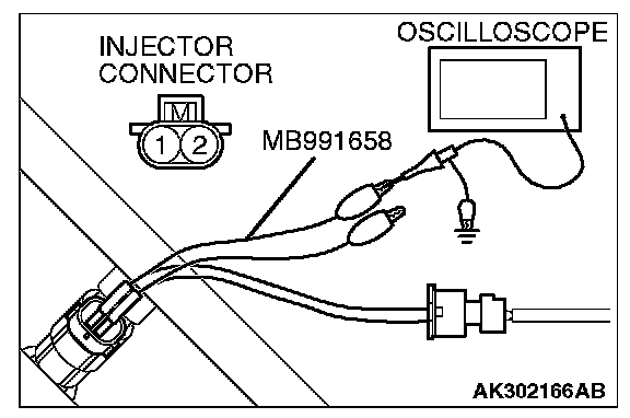 2. Connect the oscilloscope probe to injector connector terminal No. 2.