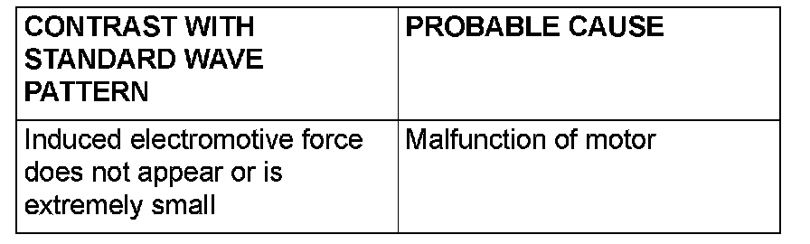 - Current is not supplied to the motor coil on the open circuit side. (Voltage does not drop to 0 volt.) Furthermore, the induced electromotive force wave pattern at the normal side is slightly different from the normal wave pattern.