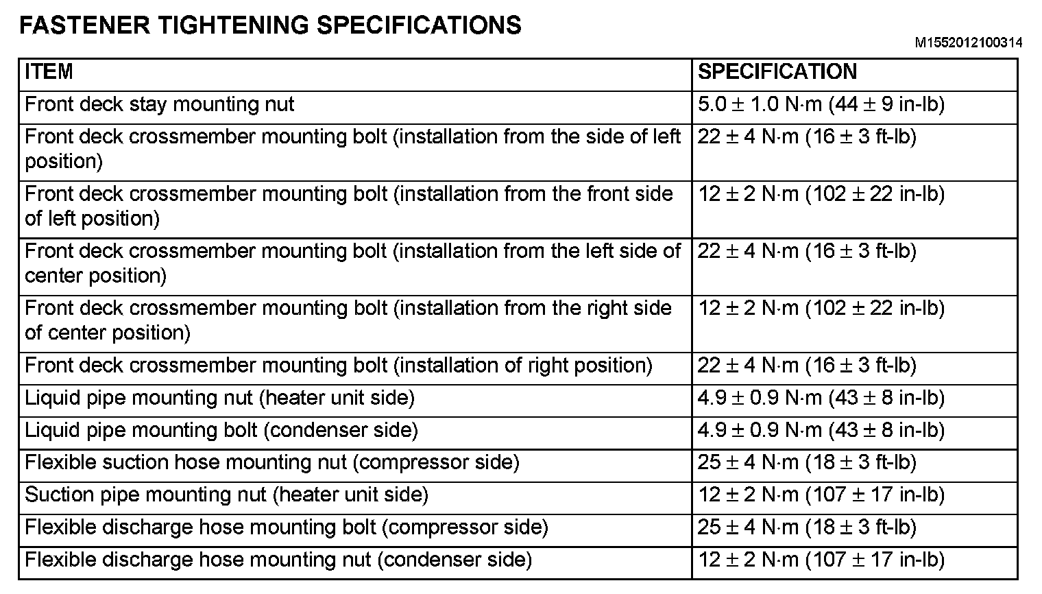 Fastener Tightening Specifications: