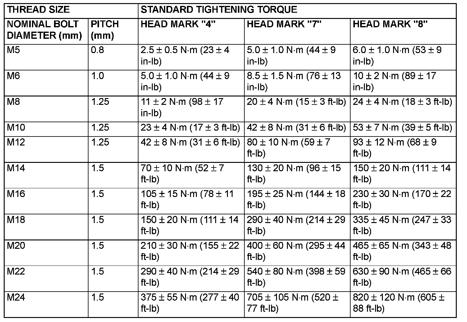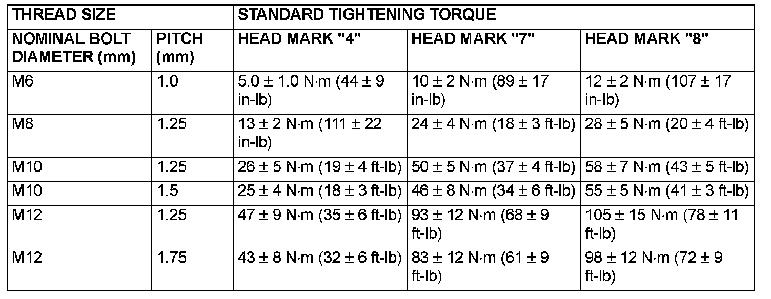 STANDARD BOLT AND NUT TIGHTENING TORQUE