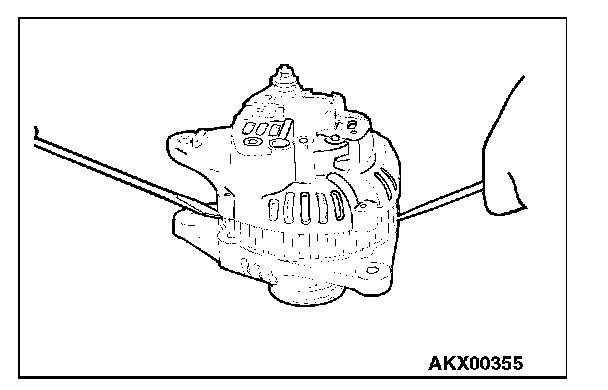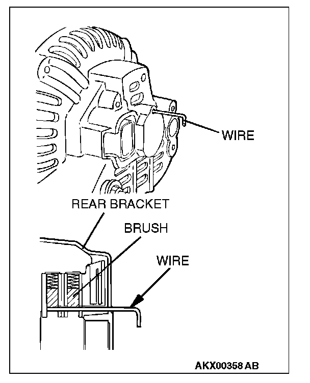After installing the regulator assembly, insert a wire through the hole provided on the rear bracket while pressing down on the brush, and secure the brush.