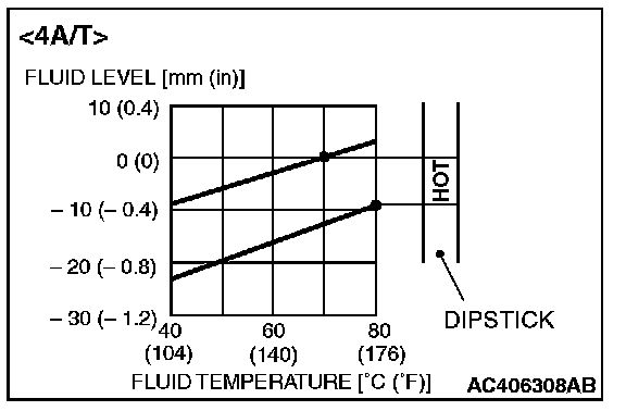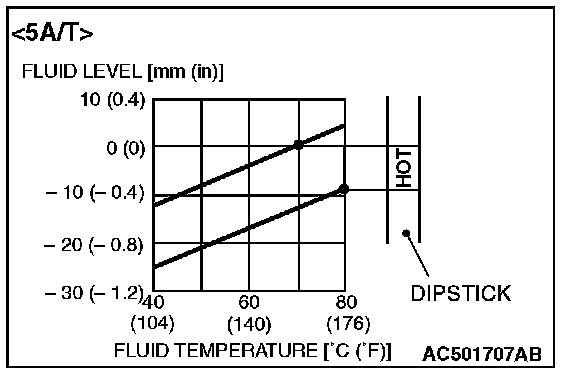 NOTE: If it takes some amount of time until the transmission fluid reaches its normal operating temperature [70 - 80 degrees C (158 - 176 degrees F)], check the transmission fluid level.