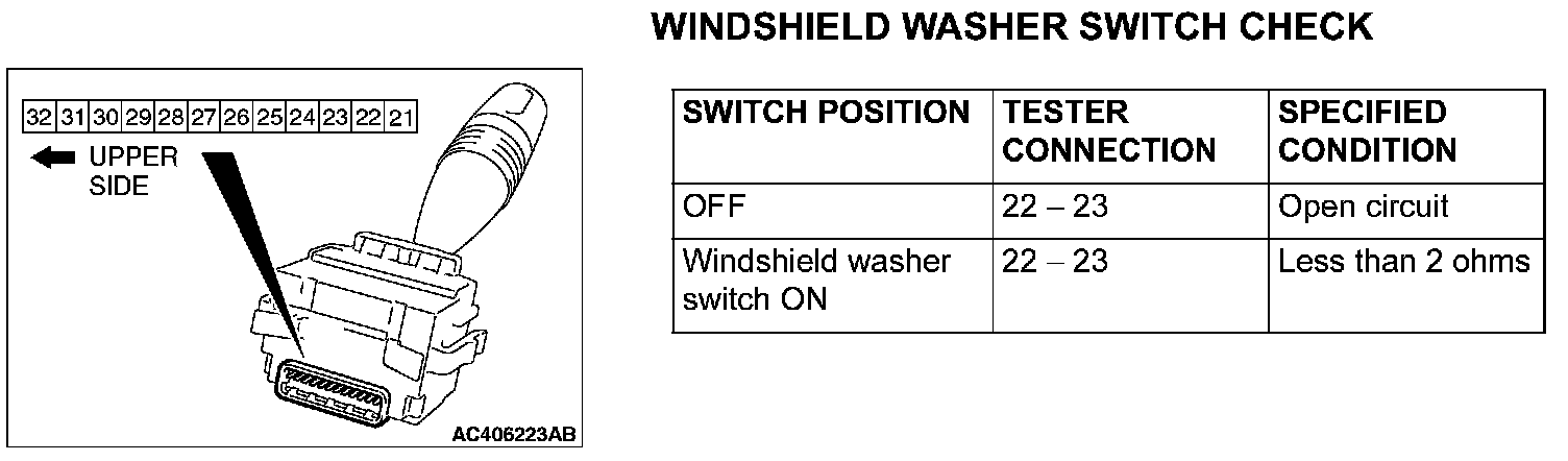 Windshield Washer Switch Check: