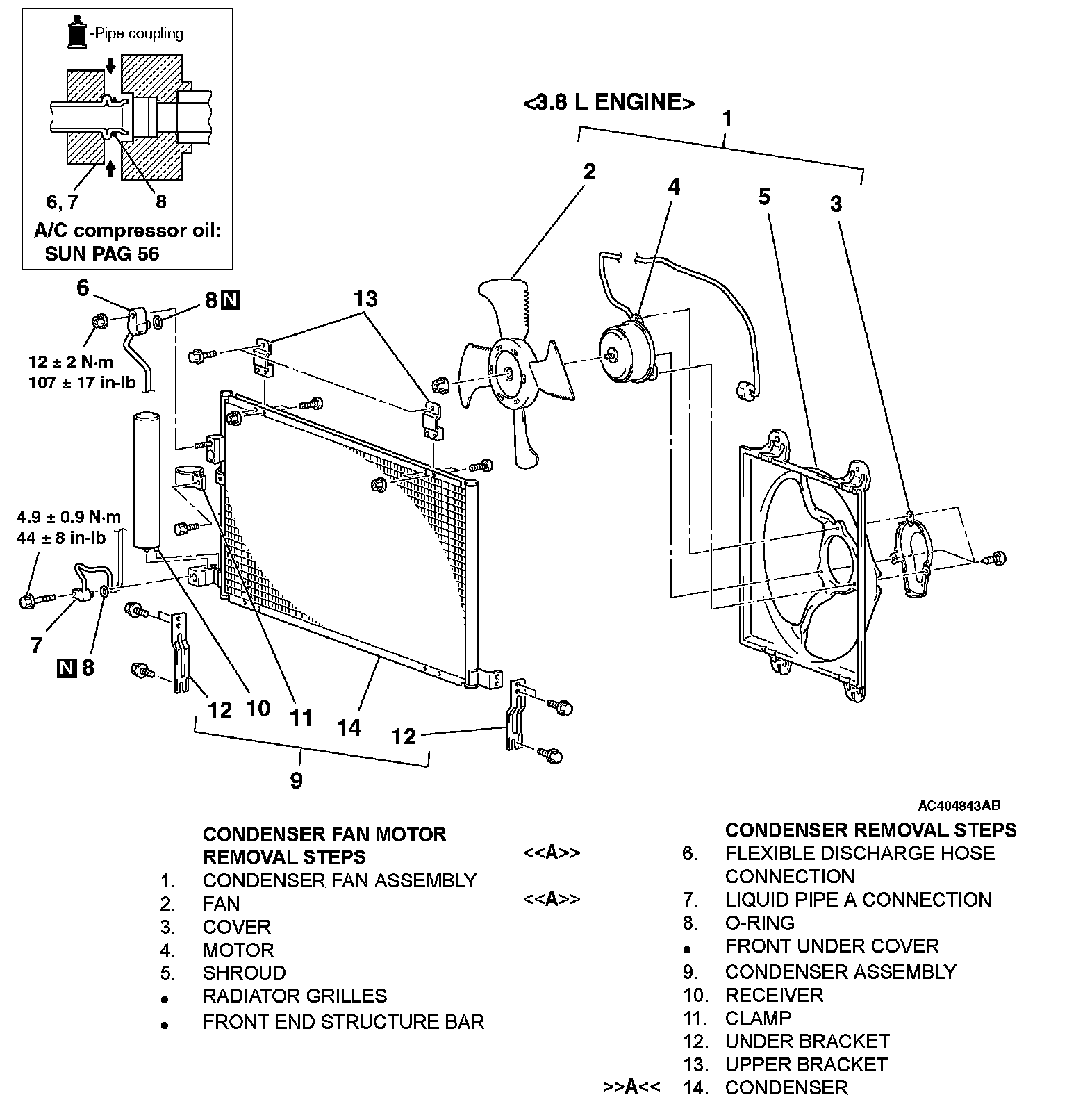 CONDENSER AND CONDENSER FAN MOTORREMOVAL AND INSTALLATION