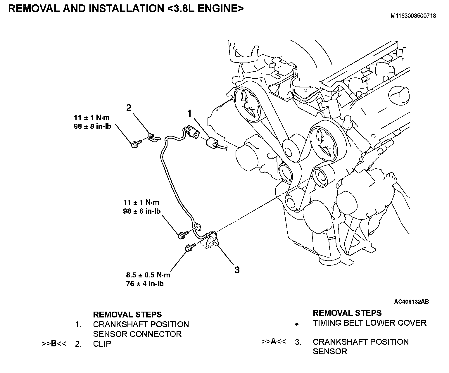 CRANKSHAFT POSITION SENSORRemoval Steps 1-3: