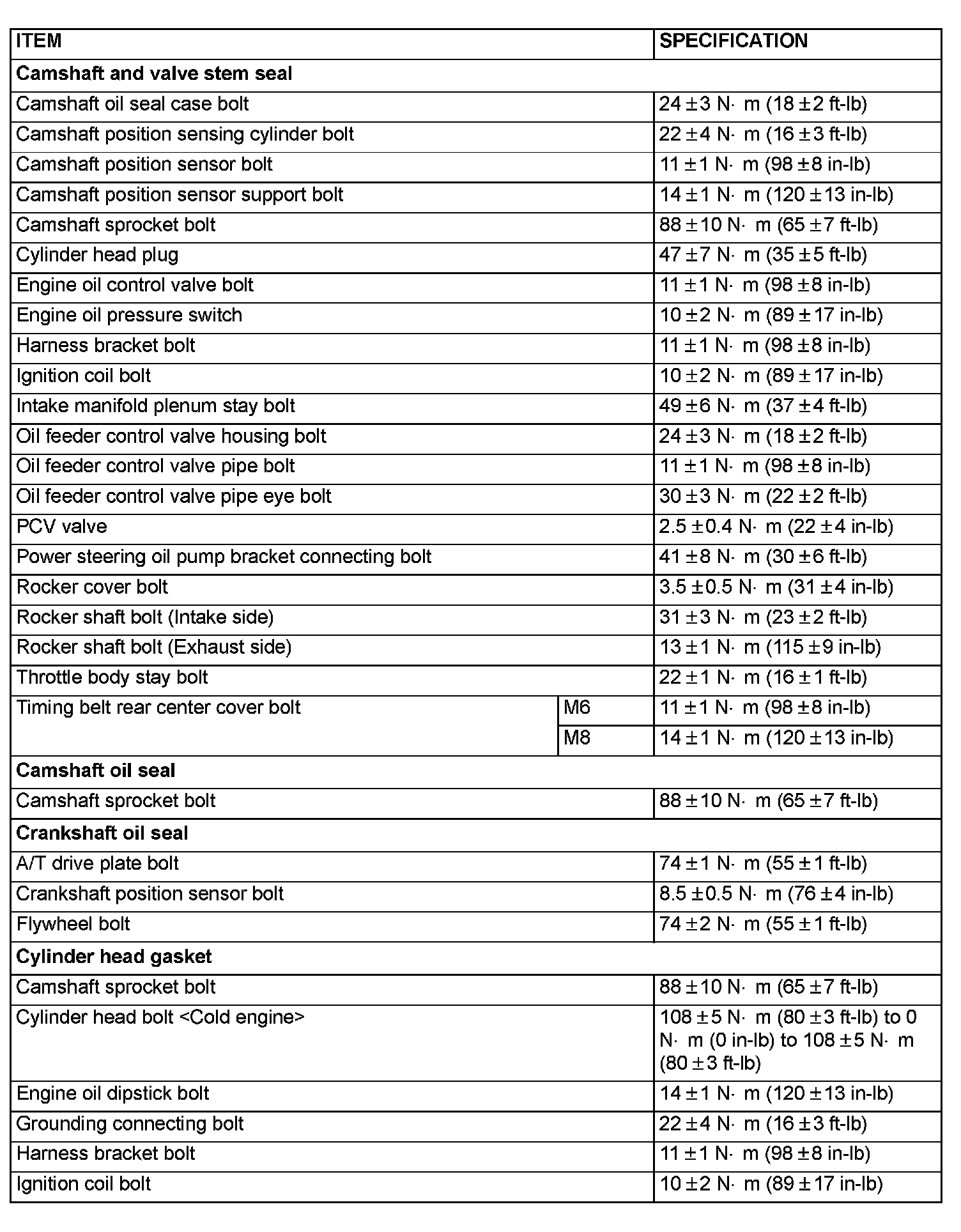 Tightening Specifications