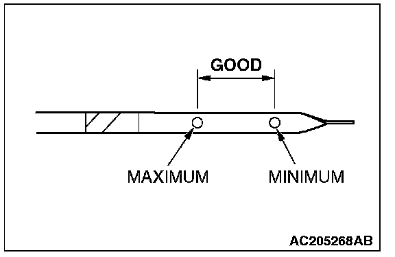 7. Pull out the oil dipstick slowly and check that the oil level is within the marks on the oil dipstick.
