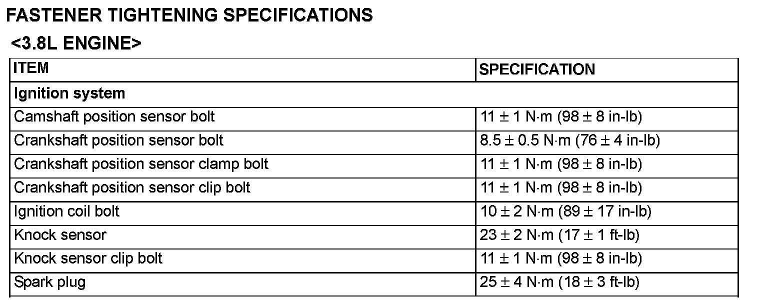 Fastener Tightening Specification - Ignition System: