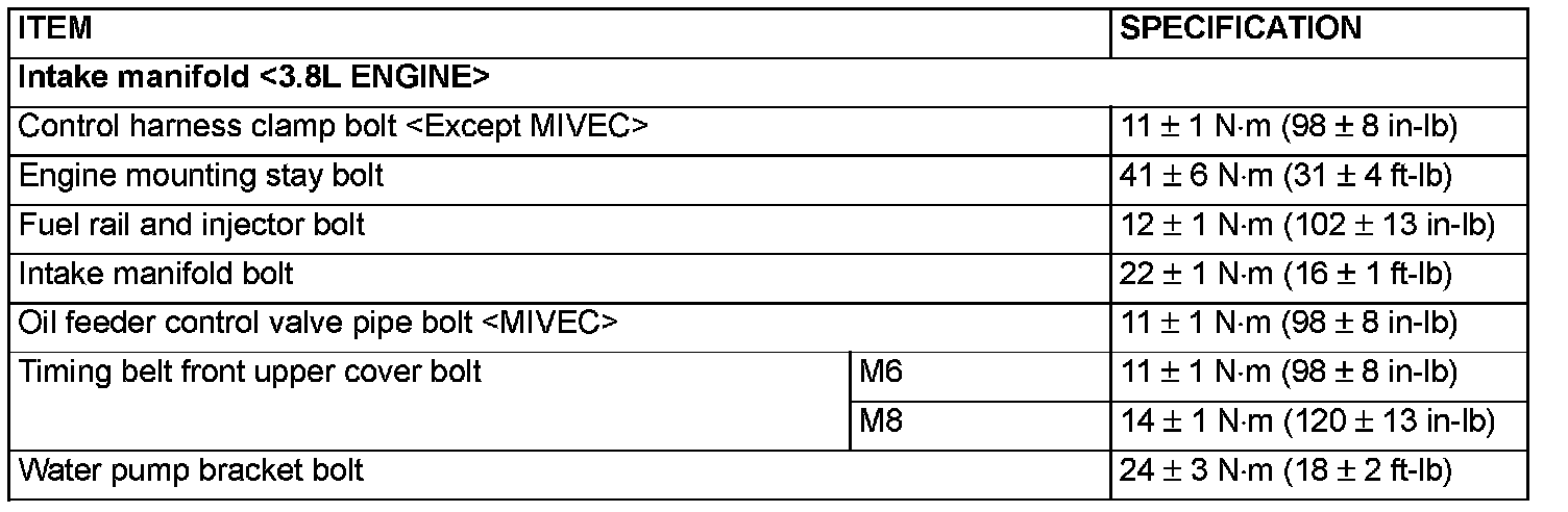 Intake Manifold - Fastener Tightening Specifications:
