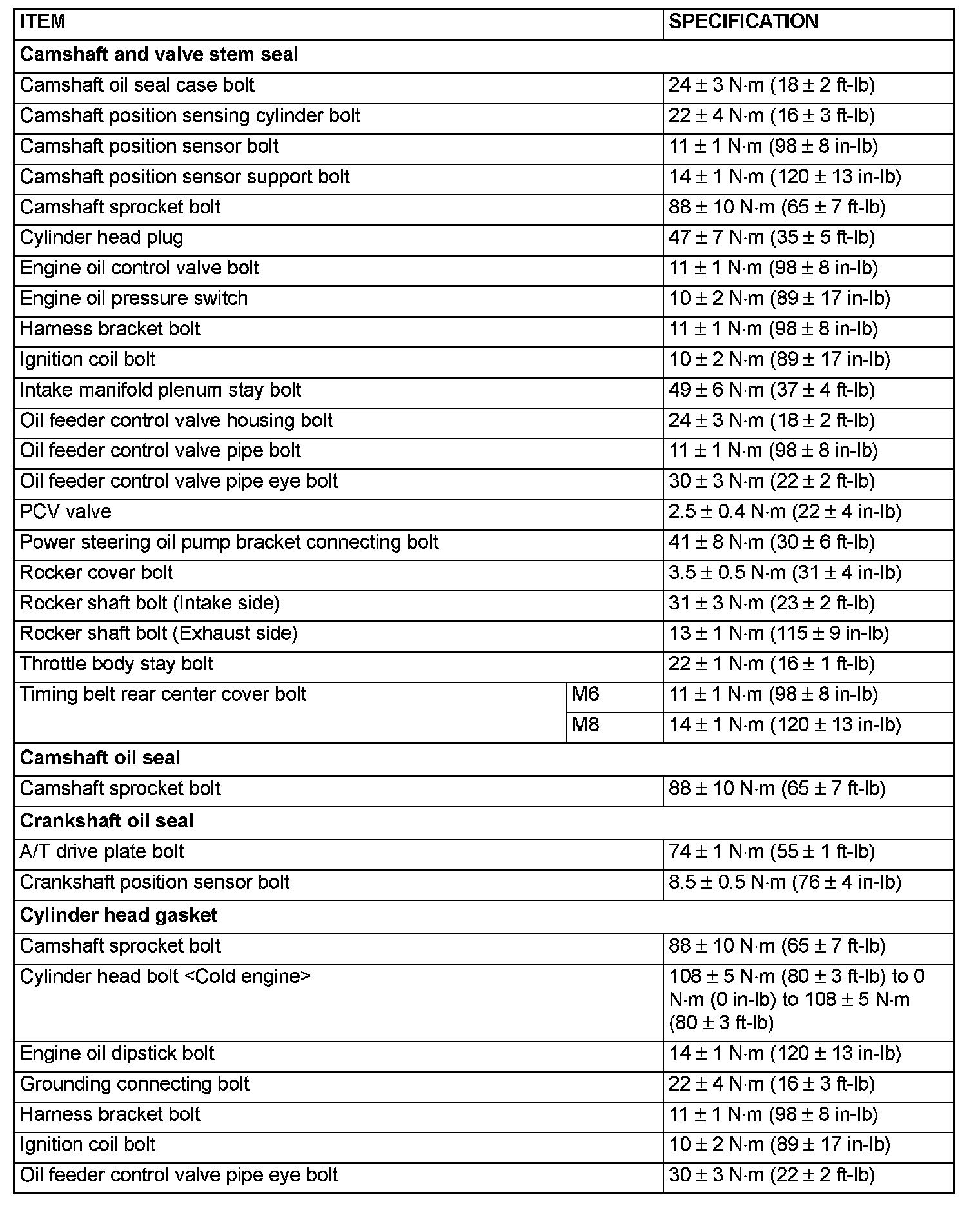 FASTENER TIGHTENING SPECIFICATIONS