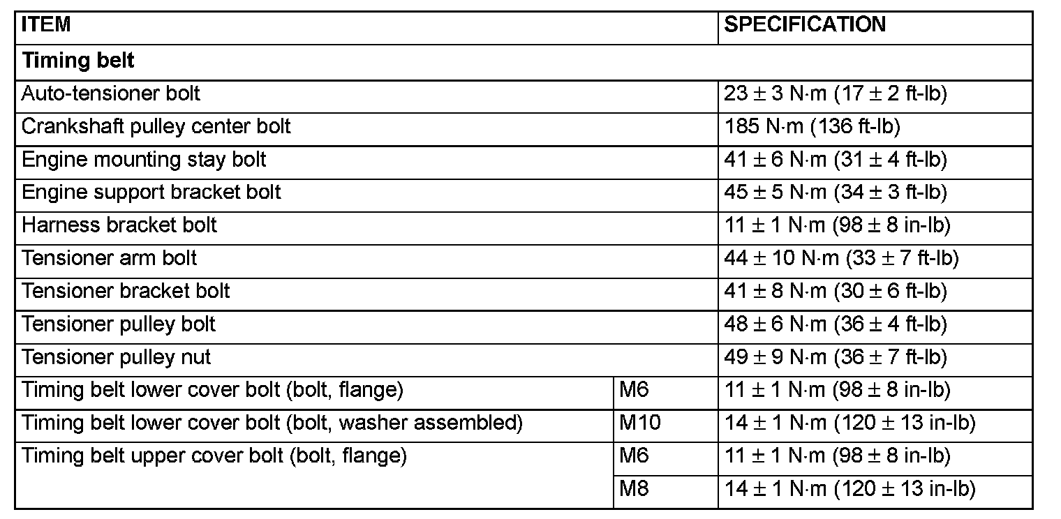 Tightening Specifications