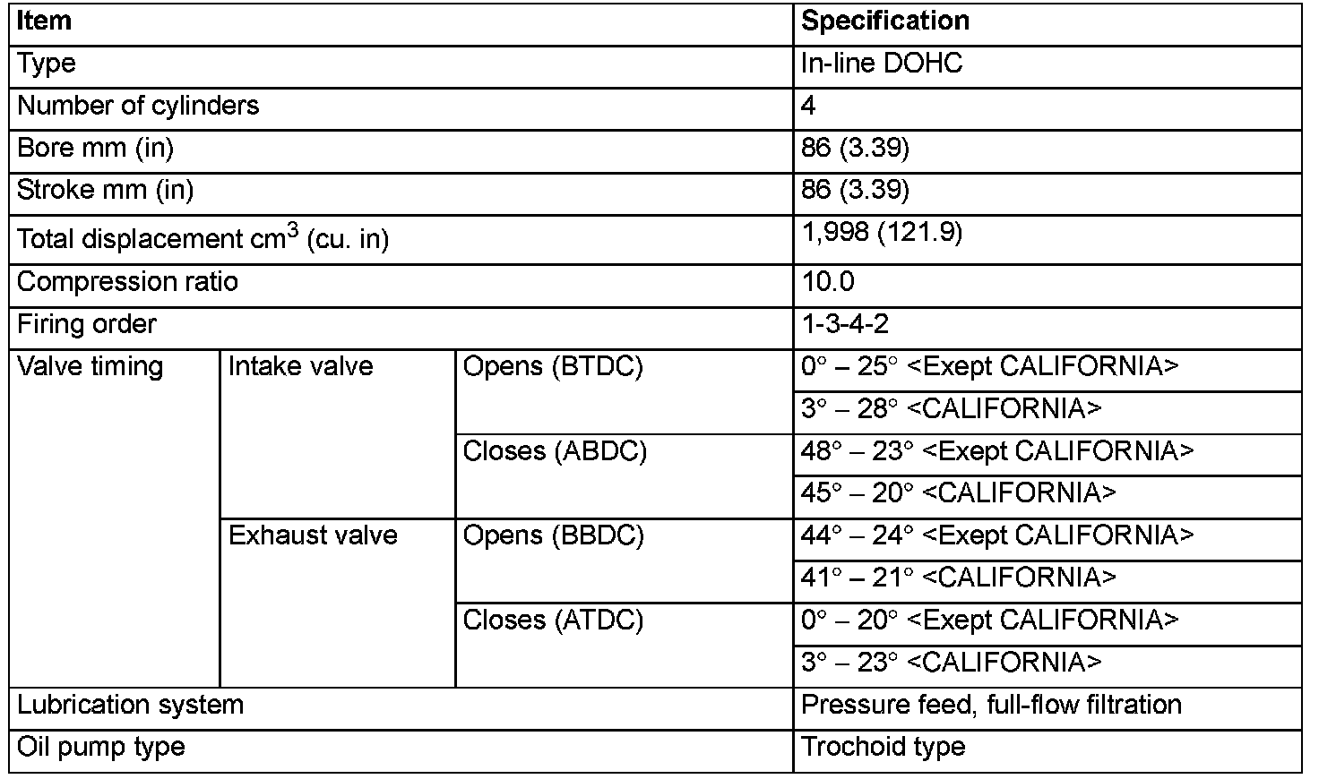 The 4B11 (2.0 L) engine is an in-line four-cylinder engine. The cylinder numbers are assigned as 1-2-3-4 from the front of the engine (