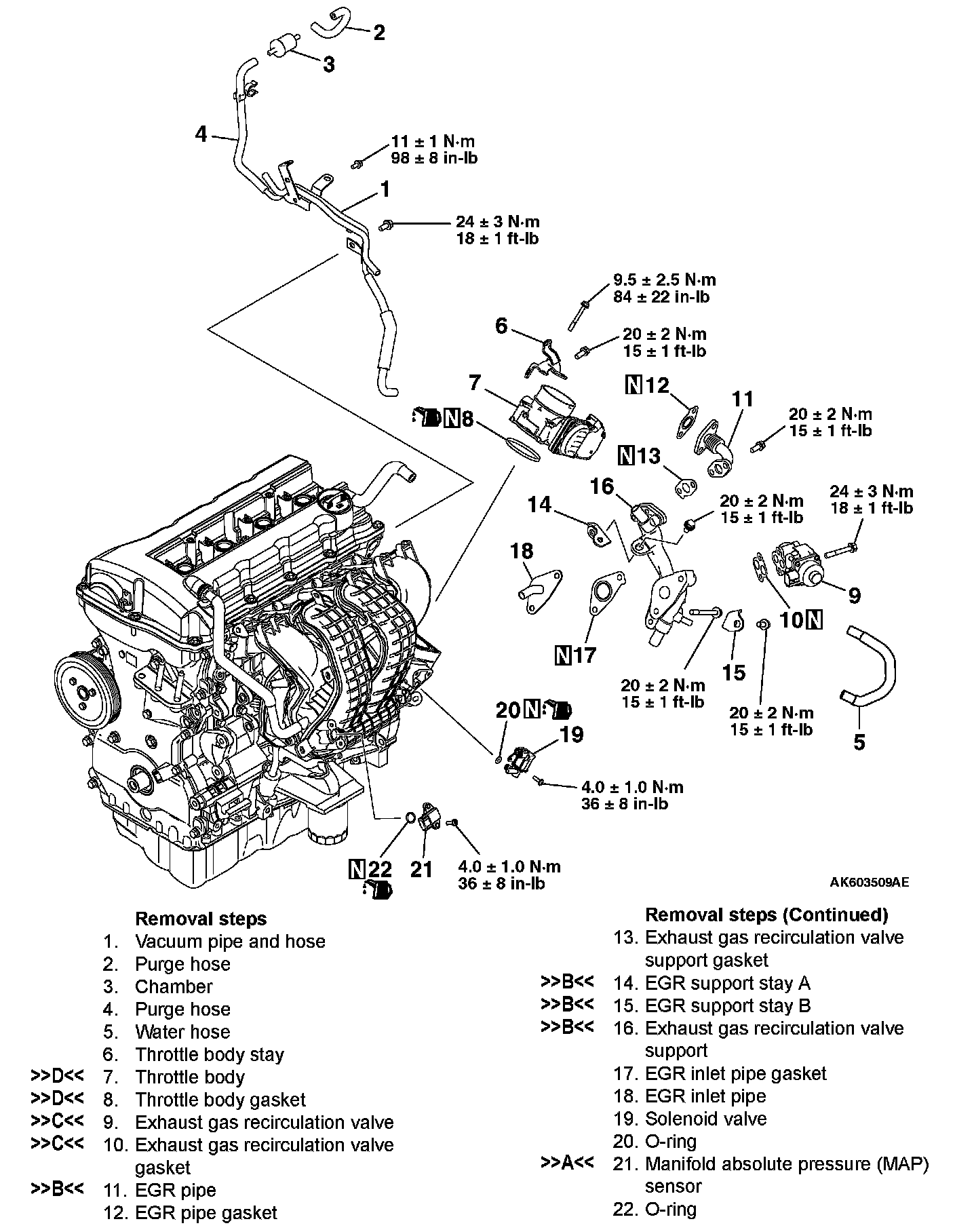 THROTTLE BODY AND EGR SYSTEMREMOVAL AND INSTALLATION