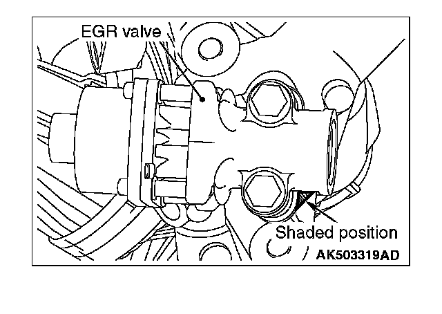 Install the Exhaust gas recirculation valve gasket with the diagonally shaded area used as the illustrated position so as not to confuse the front with the back.