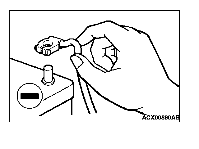 ^ Before connecting or disconnecting the negative battery cable, be sure to turn the ignition switch to the "LOCK" (OFF) position and turn off the lights (If this is not done, there is the possibility of semiconductor parts being damaged).