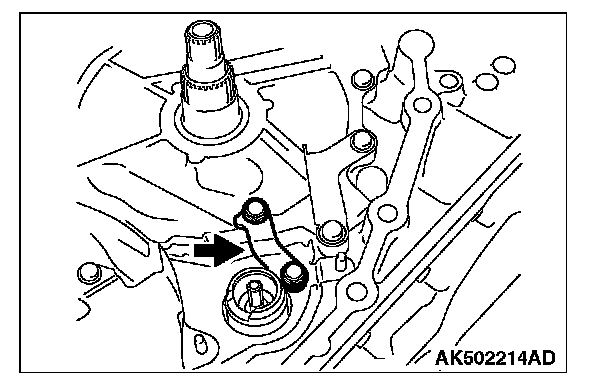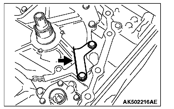 ^ Make sure the tang of thrust washer is aligned with the mounting hole of oil pump cover.