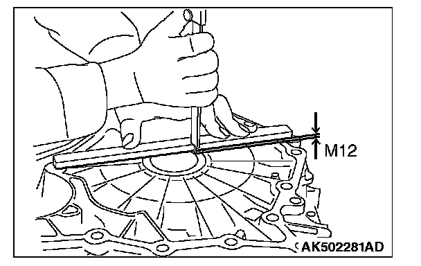 2) Measure the distance M12 between the edge of converter housing and the surface contacting the adjusting shim.