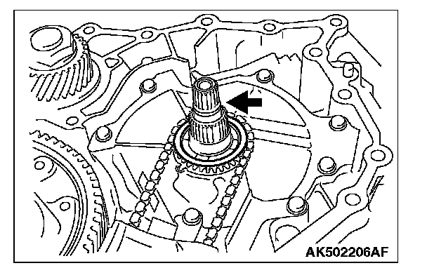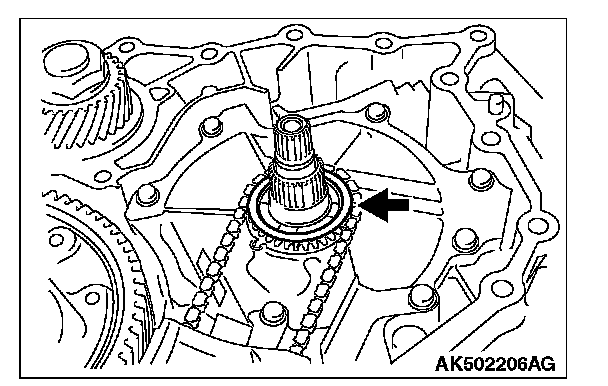 4) Install the selected adjusting shim on the drive sprocket. For selection of the adjusting shim, refer to "SERVICE SPECIFICATIONS".