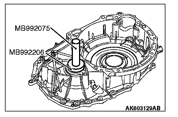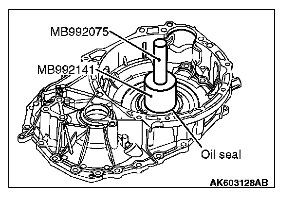 55. Using the special tools MB992141 and MB992075, install the converter housing oil seal on the converter housing.