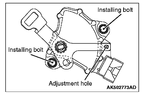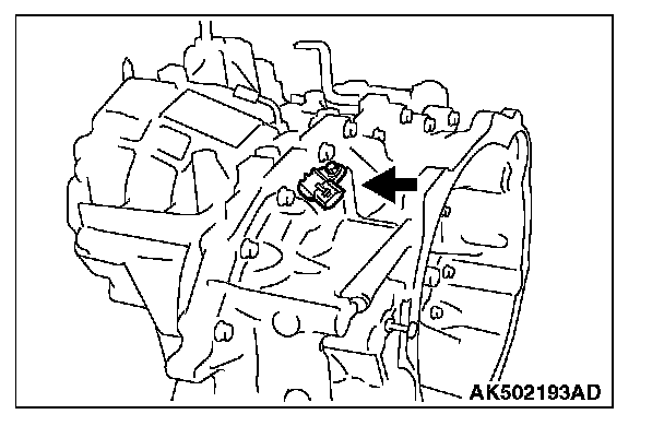 4) Insert pins etc. (diameter 5 mm (0.20 in) ) in adjusting holes in both inhibitor switch and shift lever, and after alignment, tighten the fastening bolts to the specified torque.