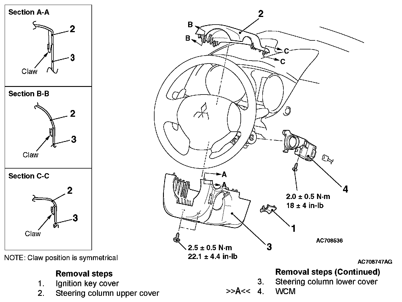 REMOVAL AND INSTALLATIONCAUTION: When WCM has been replaced, all key ID codes should be registered, referring to the ID code registration judgment table.