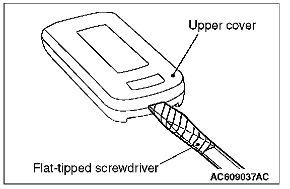 Set a flat-tipped screwdriver wrapped with protective tape as shown in the figure, and pry off the keyless operation key.