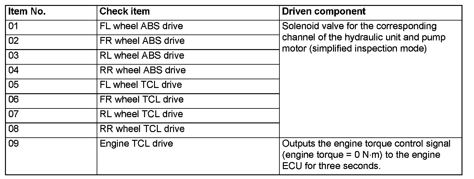 ^ When ASC-ECU is disabled due to the fail-safe function, the actuator test cannot be performed.