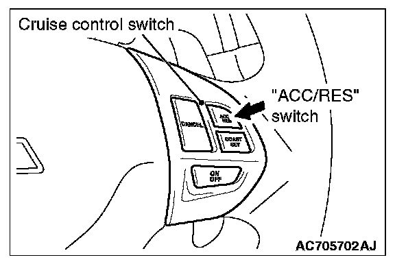 4. Check to be sure that acceleration continues while the "ACC/RES" switch is pressed, and that the speed at the time it was released becomes the constant driving speed.