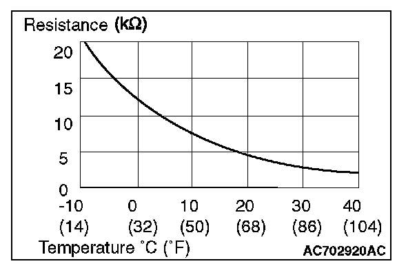 When the resistance between the sensor terminals is measured under two or more temperature conditions, the resistance should approximately satisfy the illustrated values.