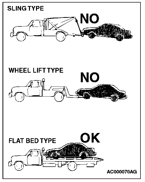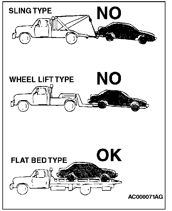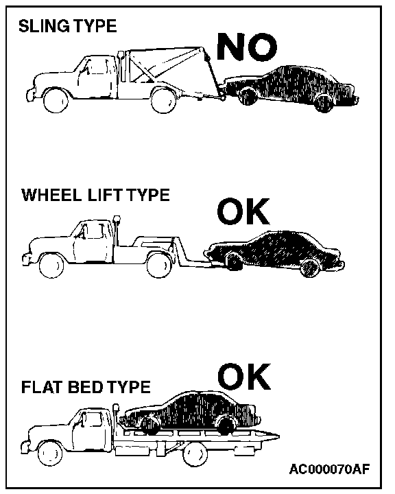 This vehicle cannot be towed by a wrecker using sling-type equipment; as the bumper may become deformed. If this vehicle is towed, use wheel lift or flat bed equipment.