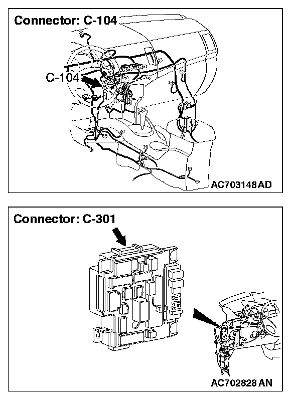 STEP 3. Check ETACS-ECU connector C-301 for loose, corroded or damaged terminals, or terminals pushed back in the connector.