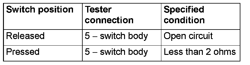Remove the center panel unit. Then check continuity between the switch terminal and switch body.