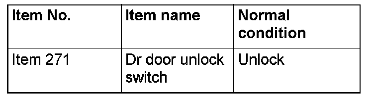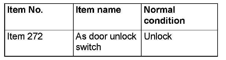 Q: Are normal conditions displayed on the "Dr door unlock switch" and "As door unlock switch"?