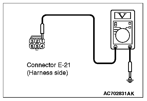 STEP 5. Check the wiring harness between front door lock actuator (LH) connector E-21 (terminal 1) and ground.