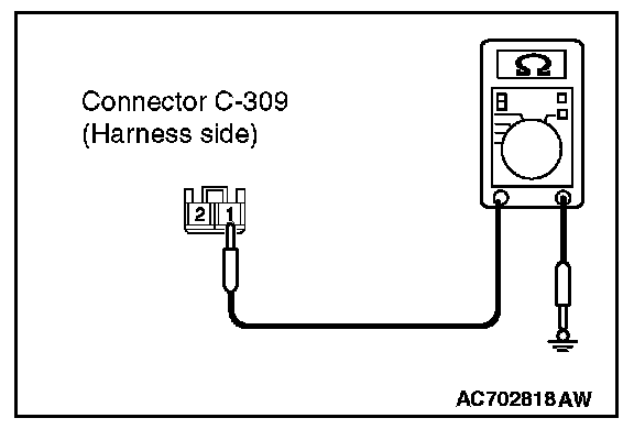 STEP 13. Check the wiring harness between front door lock actuator (RH) connector E-09 (terminal 1) and ETACS-ECU connector C-301 (terminal 10).