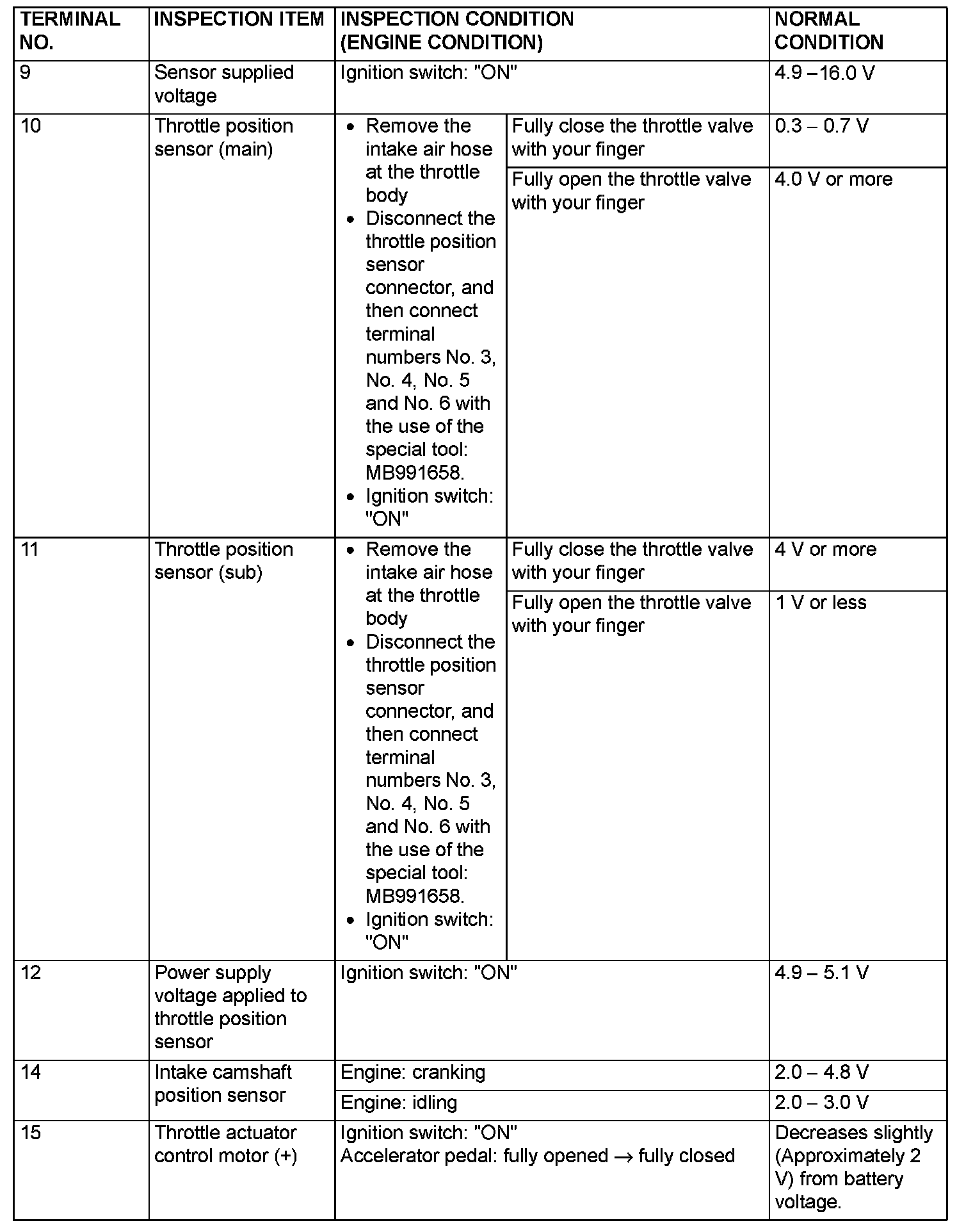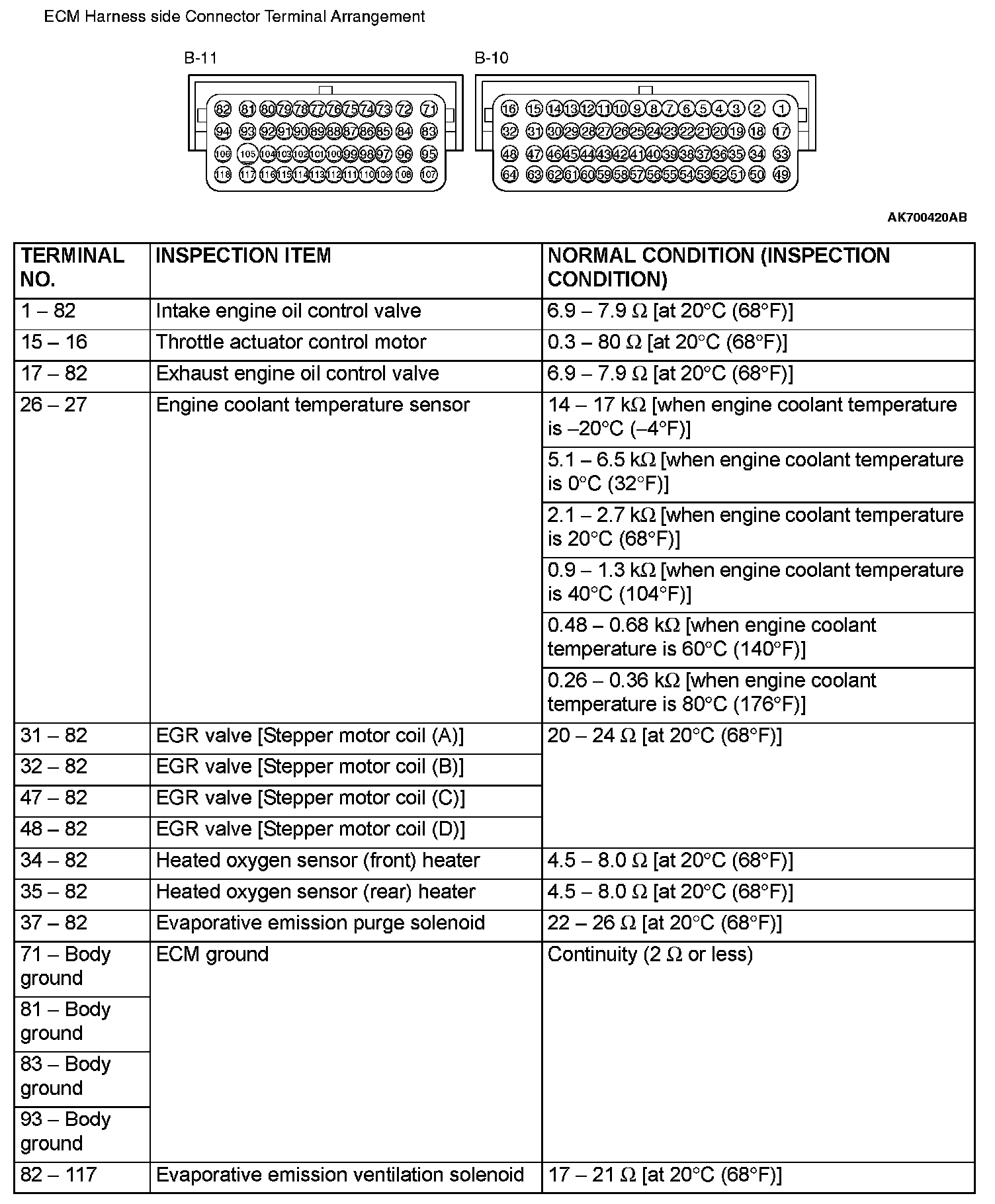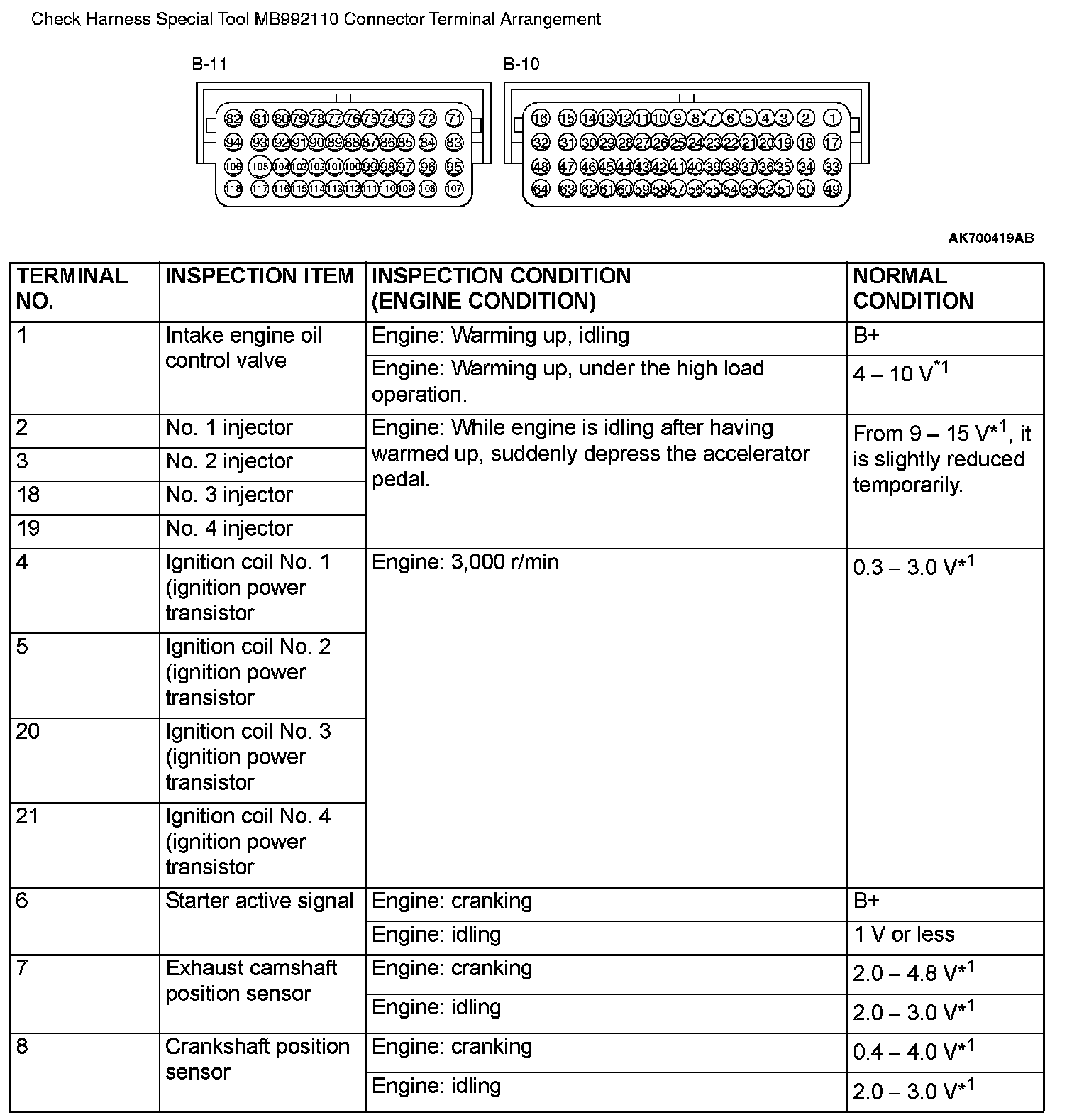 CHECK AT THE ENGINE CONTROL MODULE (ECM)1. Disconnect the ECM connectors B-10 and B-11, and connect check harness special tool MB992110 between the ECM connectors.